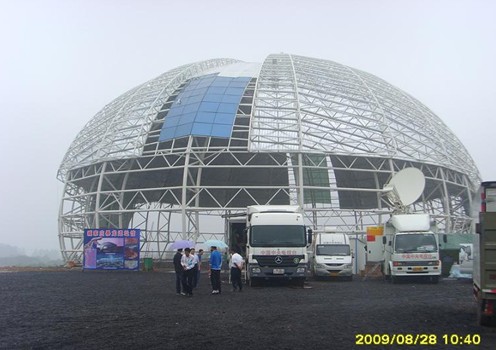 采用網架結構,使屋面承重力降低,一般說來每平方米投影面積用鋼材40-70公斤。